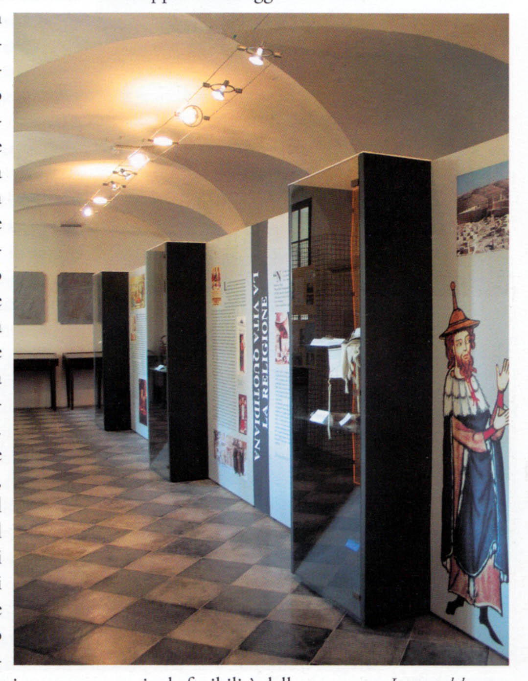 Il percorso di visita è strutturato pertanto in una serie di pannelli di facile lettura, riccamente illustrati e intervallati da ariose vetrine in cui sono disposti oggetti significativi (tra i pochi elementi originali, uno shofar anticamente appartenuto alla sinagoga; altri sono moderni, o riproduzioni di oggetti d’epoca; altri ancora vengono acquisiti tramite donazioni o mediante acquisti in antiquariato). Tra le vetrine inserite nel percorso espositivo, di particolare effetto sono quelle delle tavole apparecchiate per il sabato e per la cena pasquale (il seder di Pesach).